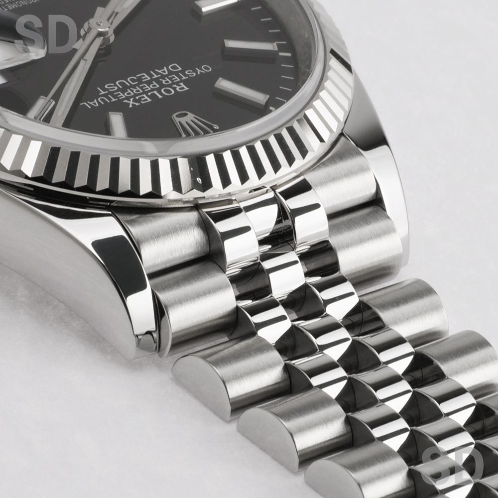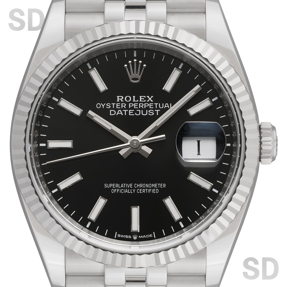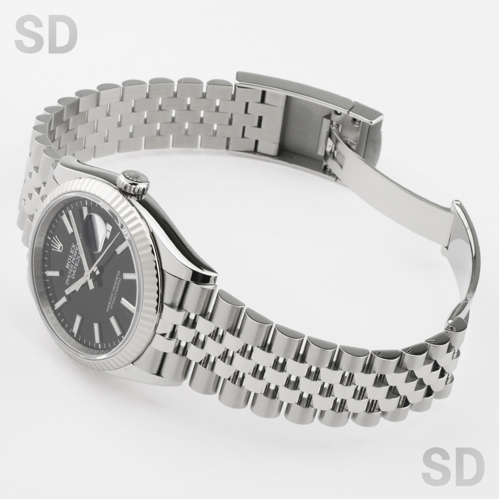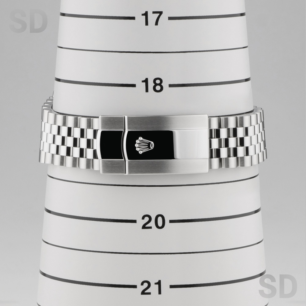 本モデルは、ホワイトゴールド製のフルーテッドベゼルとステンレススチールによるロレゾール(コンビ)仕様に、ブランドを象徴するジュビリーブレスレットを採用。文字盤にはブライトブラックを配しており、艶やかな質感が高級感を引き立てるとともに、優れた視認性と落ち着いた印象を兼ね備えた仕上がりとなっております。
