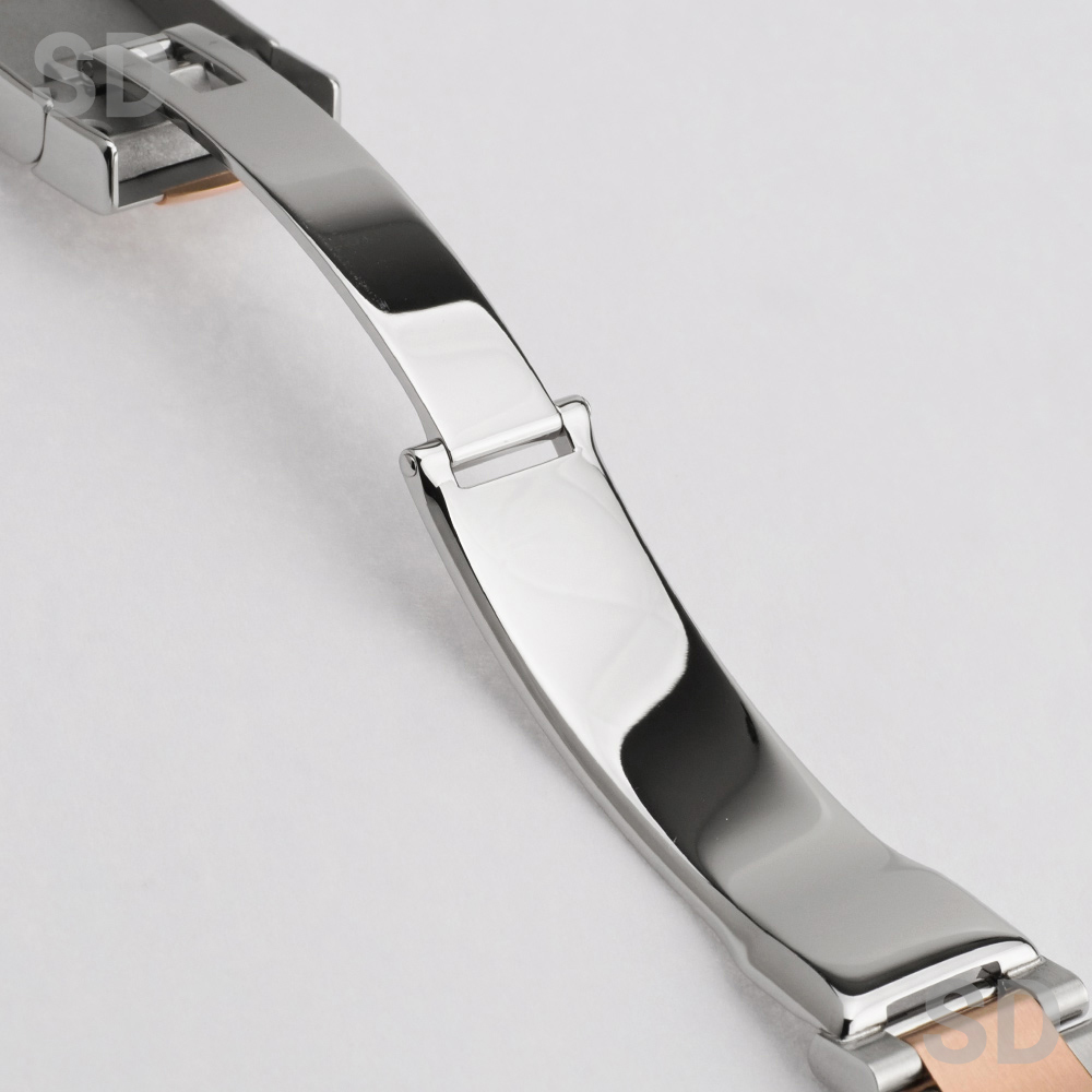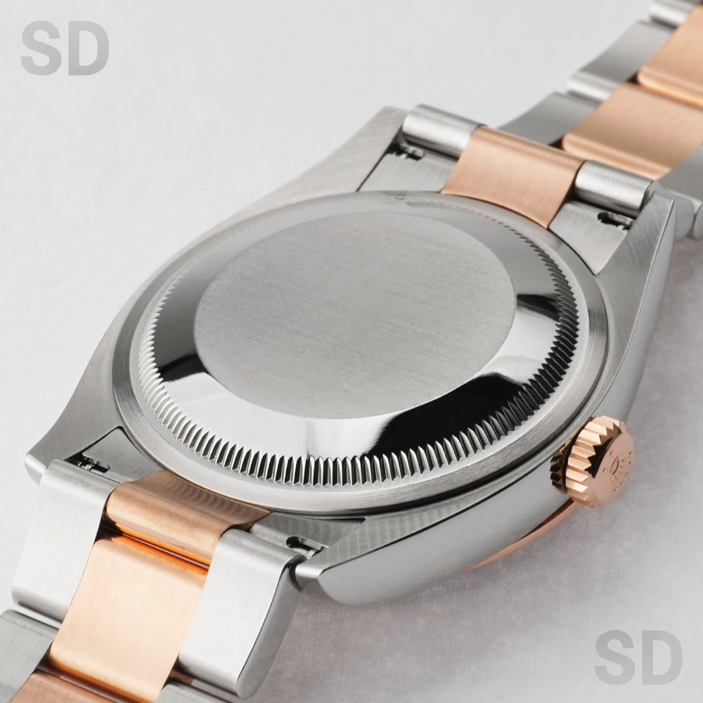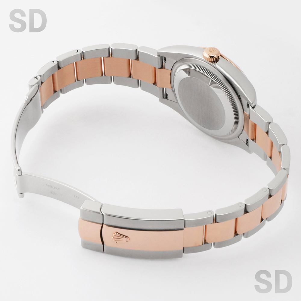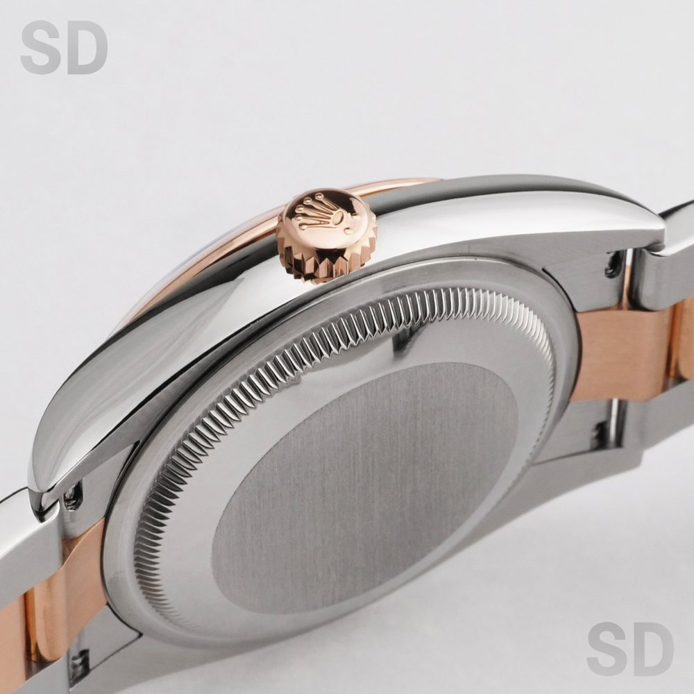 本モデルは、エバーローズゴールドとステンレススチールを組み合わせたロレゾール(コンビ)仕様を採用。ツルっとしたドーム型のスムースベゼルに、堅牢性の高いオイスターブレスレットが装着され、文字盤にはすでに生産が終了しているROLEXのモチーフが繊細にあしらわれたチョコカラーのコンピューターを配し、インデックスには上質なダイヤモンドをセッティングされ、華やかさの中に気品を感じさせる洗練された佇まいが魅力の時計でございます。