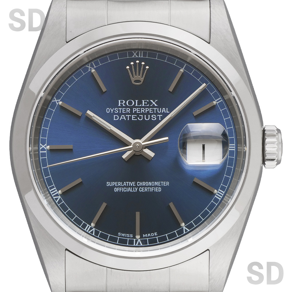 ポリッシュベゼルにオイスターブレスレットのシンプルで無駄のないスタイリッシュなデイトジャスト。この世代のデイトジャスト特有の軽さでラフにお使いいただける1本。定番シリーズとして生産終了した現在でも非常に人気が高く、流行り廃りのないデザインの為、末永く愛用できるモデルです。