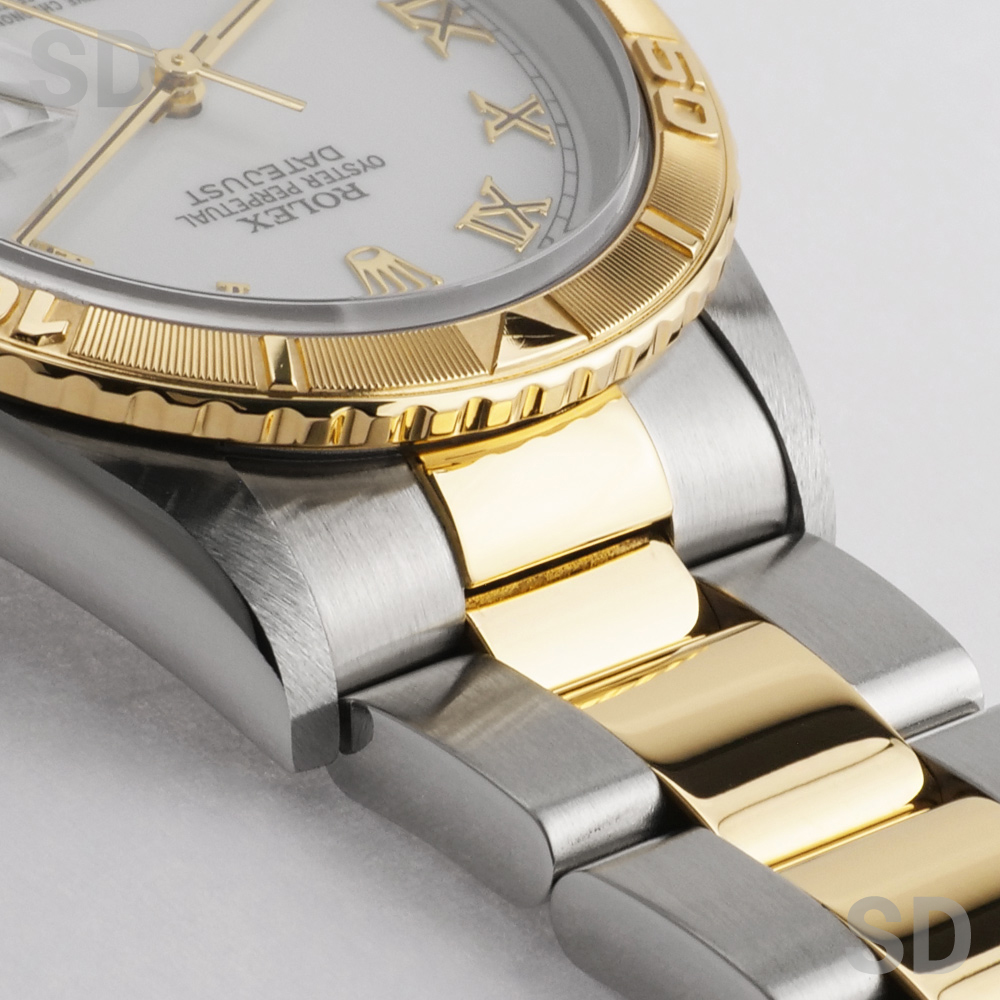 回転ベゼルを装備するデイトジャスト、それがサンダーバードです。米空軍アクロバットチーム“サンダーバーズ”の隊長の引退記念として特別発注したことがこのモデルの始まりといわれており、こちらはサンダーバードとしては5世代目。この世代にてサンダーバードは製造終了とされた為、最終型としても人気がございます。回転ベゼルによってドレスモデルとは思えぬスポーティーなデザインがとても印象的で、ちょっとした通好みのマニアックなモデルともされますが、スタイルを気にせず使える実用的な1本です。