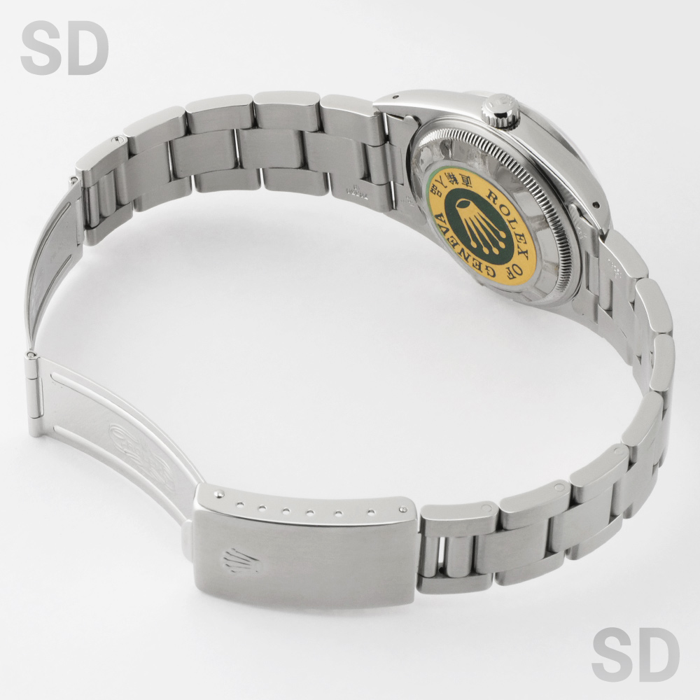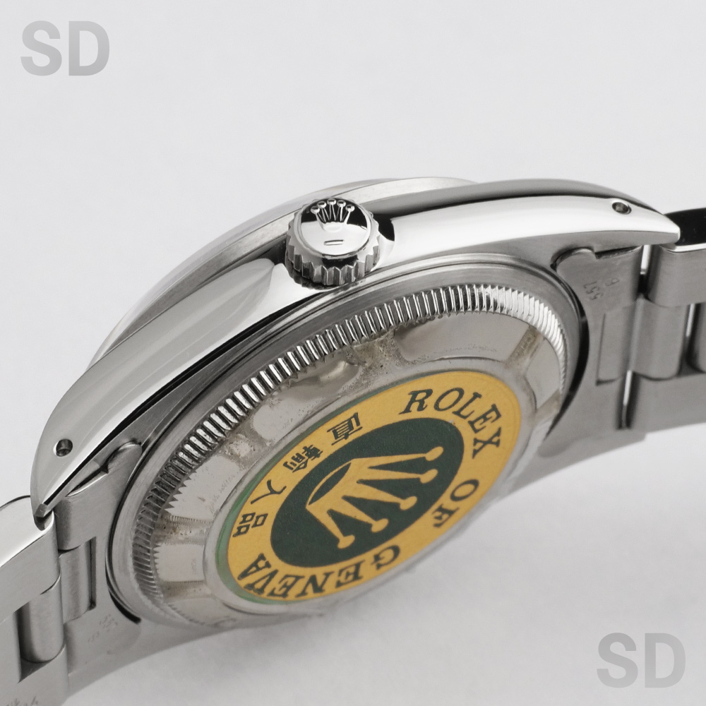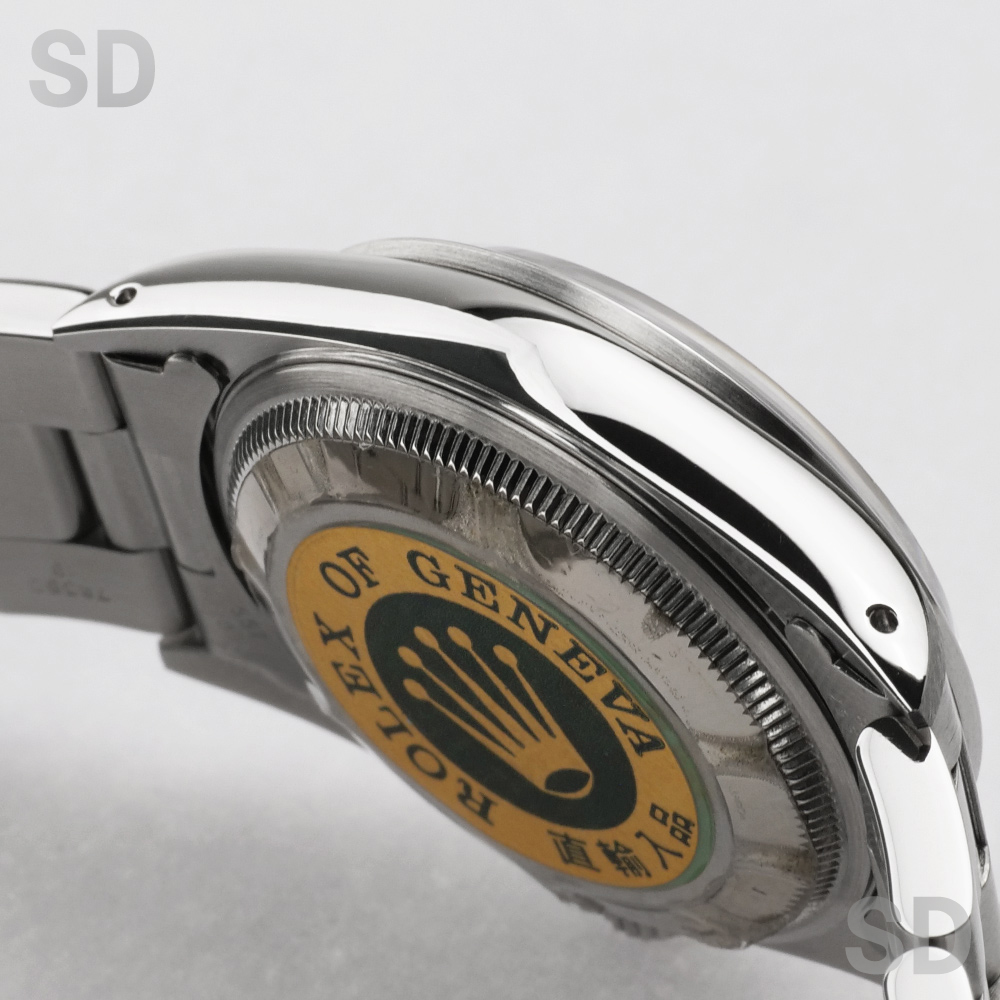 1988年頃〜2006年頃まで製造されていた34mmパーペチュアルデイト。同世代である34mmエアキングの日付付きバージョンとされるモデルであり、デイトジャストのケースが小さいバージョンともされるモデルです。搭載されるムーブメントはデイトジャスト同様のCal.3135であり安定感のある精度を保ちます。シンプルなデザインですので、スタイルを選ばずラフにご使用出来る1本。ロレックス入門モデルとしても、普段使い分け用セカンドウォッチとしても人気の高いモデルです。