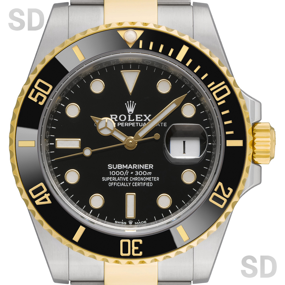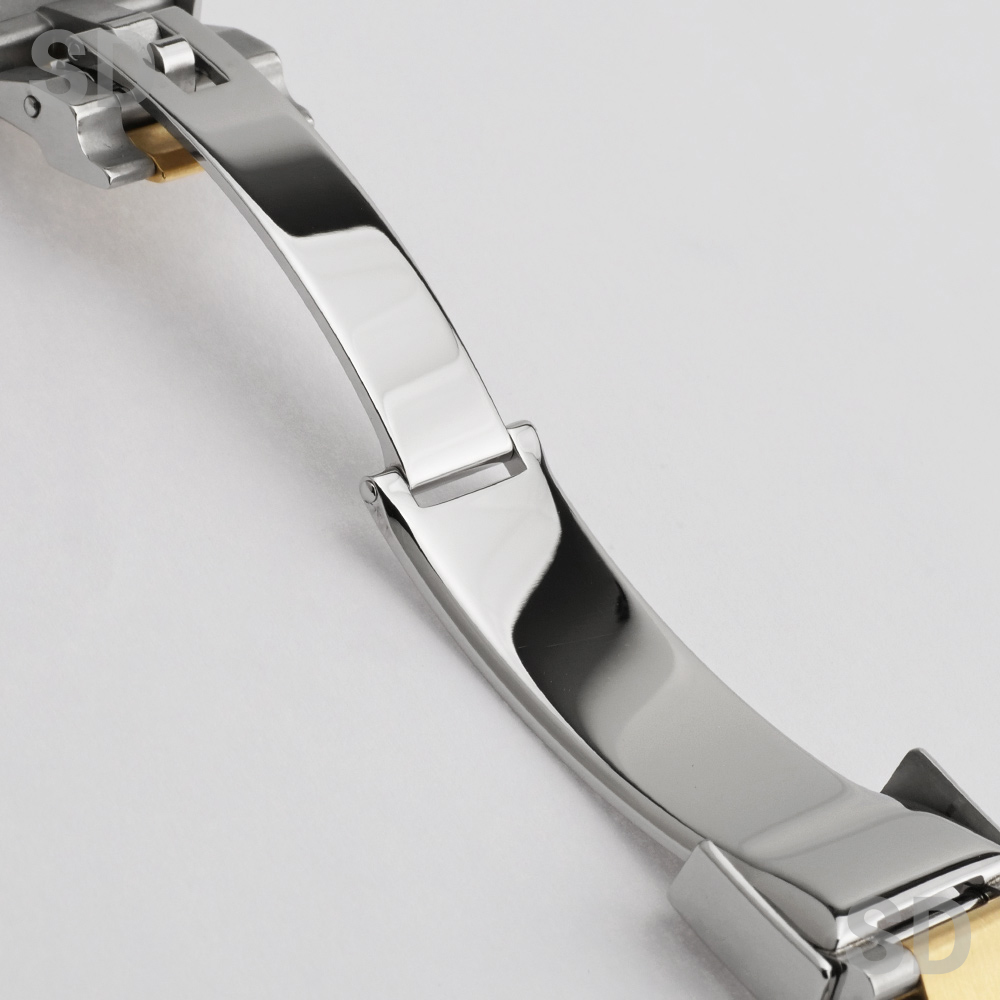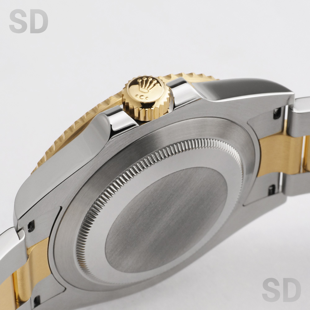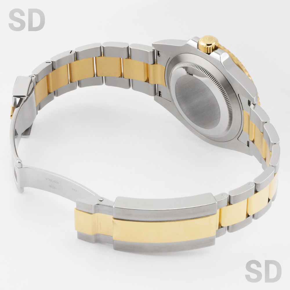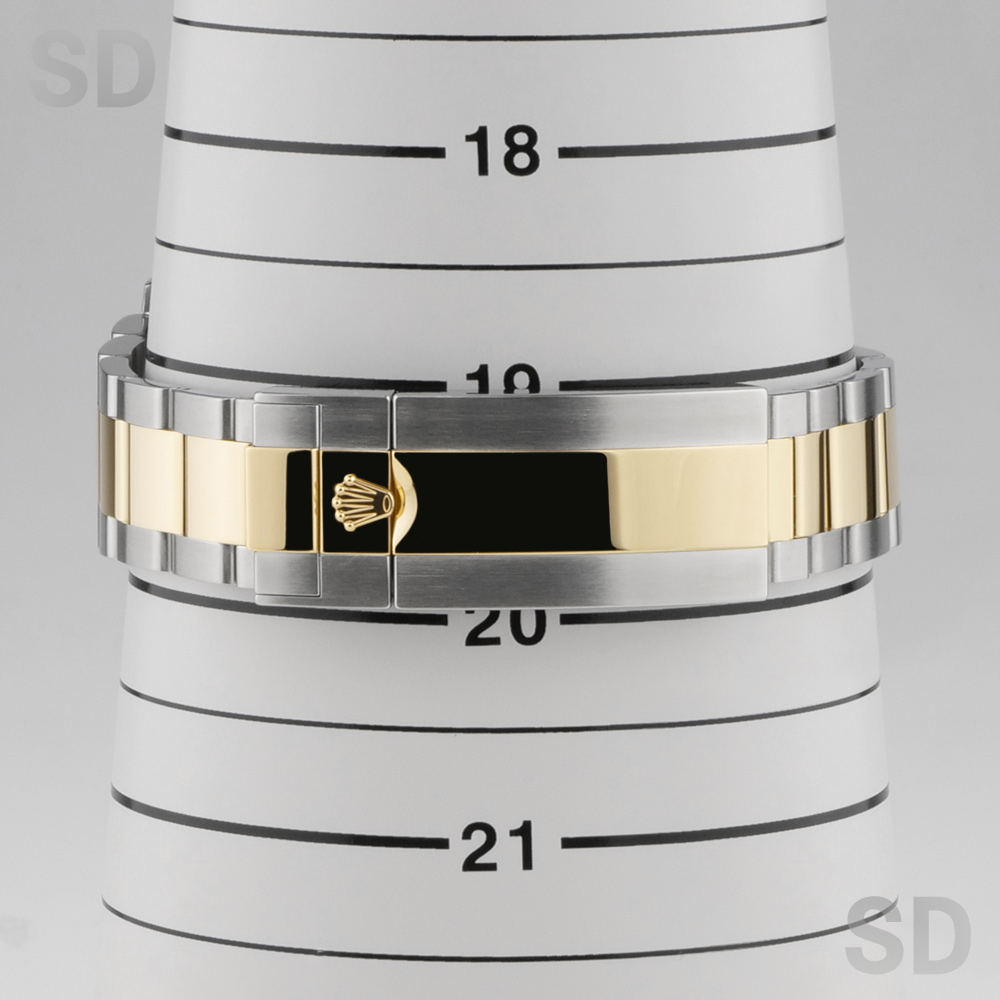 本モデルは、ステンレススチールとイエローゴールドを組み合わせたロレゾール(コンビ)仕様の、現行サブマリーナーです。深みのあるブラックダイアルとセラクロムベゼルに、イエローゴールドの艶やかな輝きが調和し、洗練された美しさを際立たせます。ケースサイズは従来の40mmから41mmへと進化し、よりバランスの取れたプロポーションを実現。内部には最新世代の自動巻きムーブメントCal.3235を搭載し、高精度と約70時間のパワーリザーブを誇るなど、実用性においても大きく向上しております。