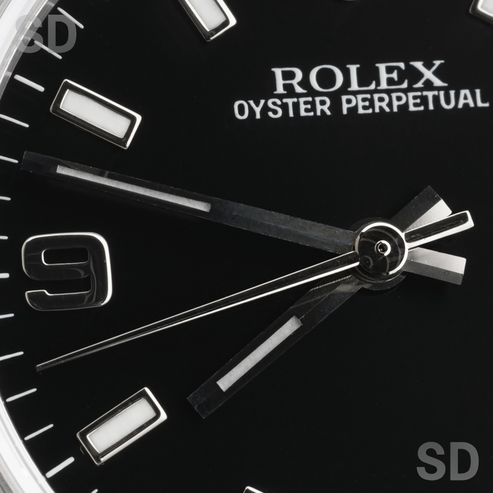 当初は男女兼用サイズとされた31mmサイズのパーペチュアル。少し大きめのサイズをお好みになる女性もしくは大きい時計が苦手な男性へオススメしたいモデル。こちらの369文字盤は、古くからパーペチュアルコレクションに採用されていた人気文字盤。スポーツモデルのエクスプローラーとデザインが類似することからペアウォッチとしてお選びになる方も多く、日付のないシンプルなデザインはオンオフ問わず末永くお使いいただける1本です。
