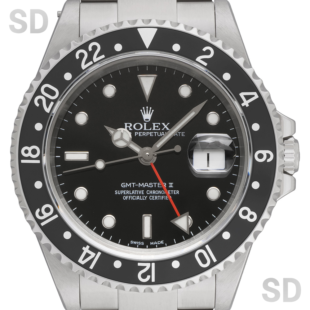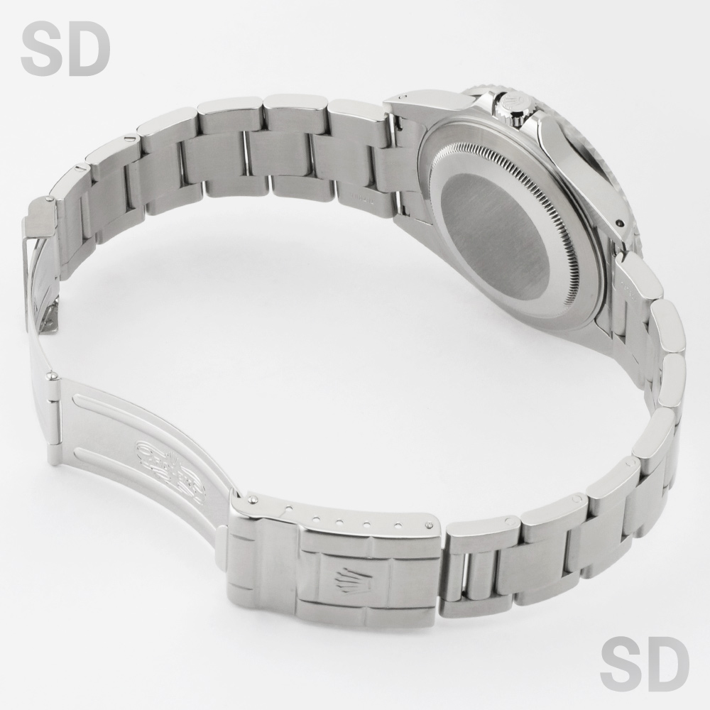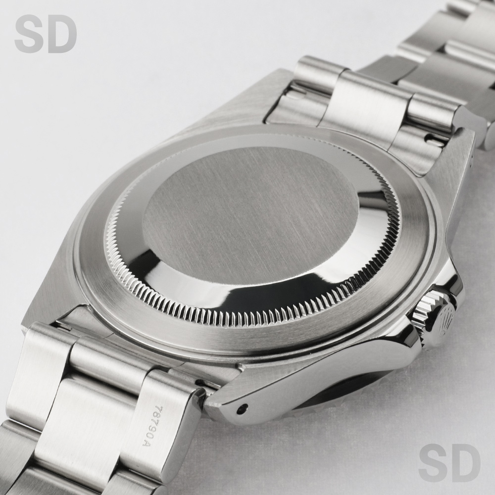 本個体は1989年頃から2007年頃にかけて製造されていた旧型リファレンスにあたり、アルミニウム製ベゼルを採用した世代の終盤を代表する存在です。ブラック単色の両方向回転ベゼルとGMT針の組み合わせにより最大3カ国の時間帯を同時に把握することが可能で、ローカル時針の独立調整機能を世界で初めて実用化したトラベルウォッチとして高い評価を受けています。ケース径は40mmでありながら、ラグ形状や厚みのバランスにより現行モデルと比較して装着感が軽快で、日常使いしやすい点も大きな特徴です。