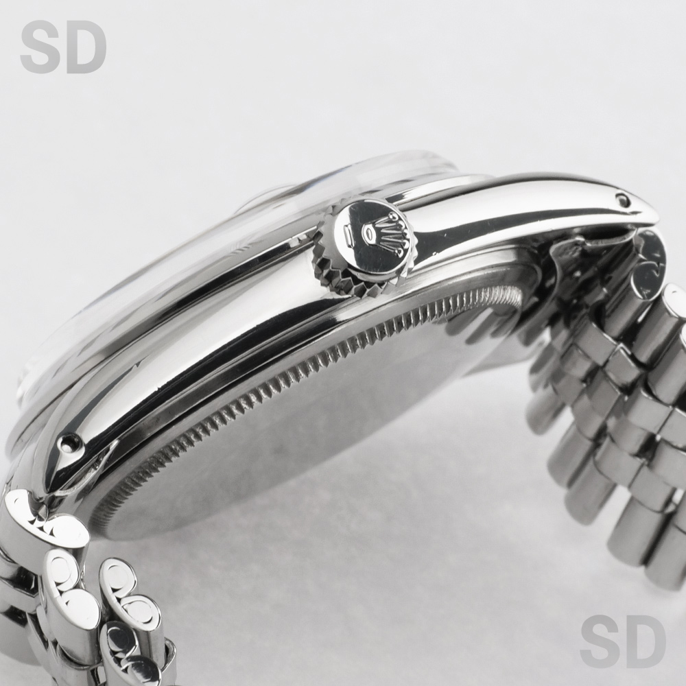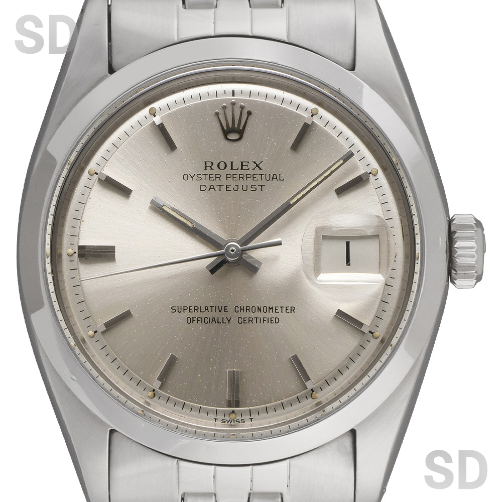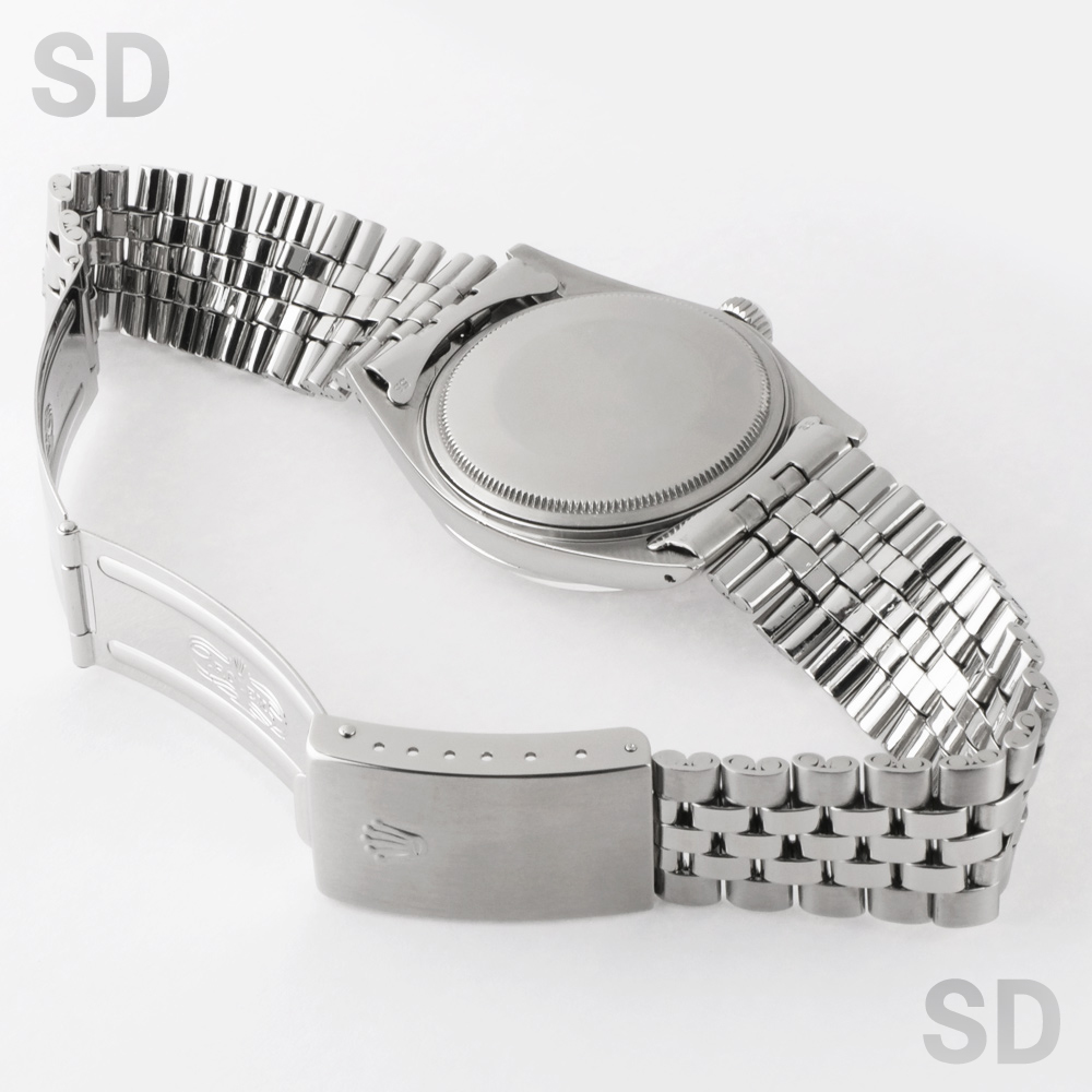 文字盤の外周が段落ちしているのが特徴のヴィンテージデイトジャストシリーズ。その中でもツルっとしたポリッシュベゼルをもつ1600は、カジュアル向きではあるもののモダンな雰囲気を醸し出し、どんなファッションにも合わせる事ができます。巻きのジュビリーブレスレットを装備した、ヴィンテージ感溢れるマニアには堪らない1本です。