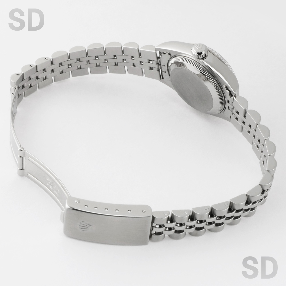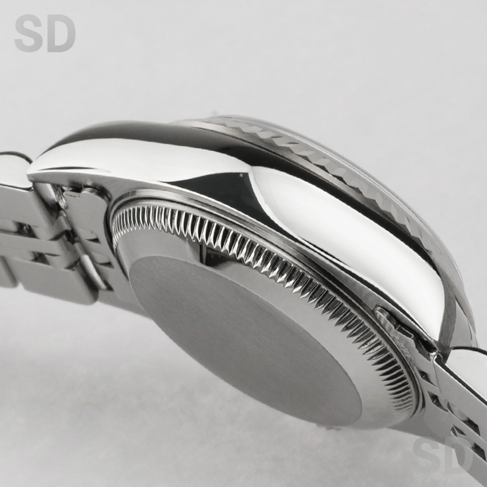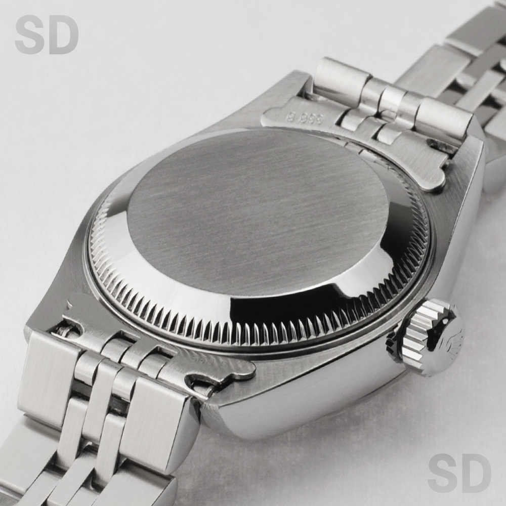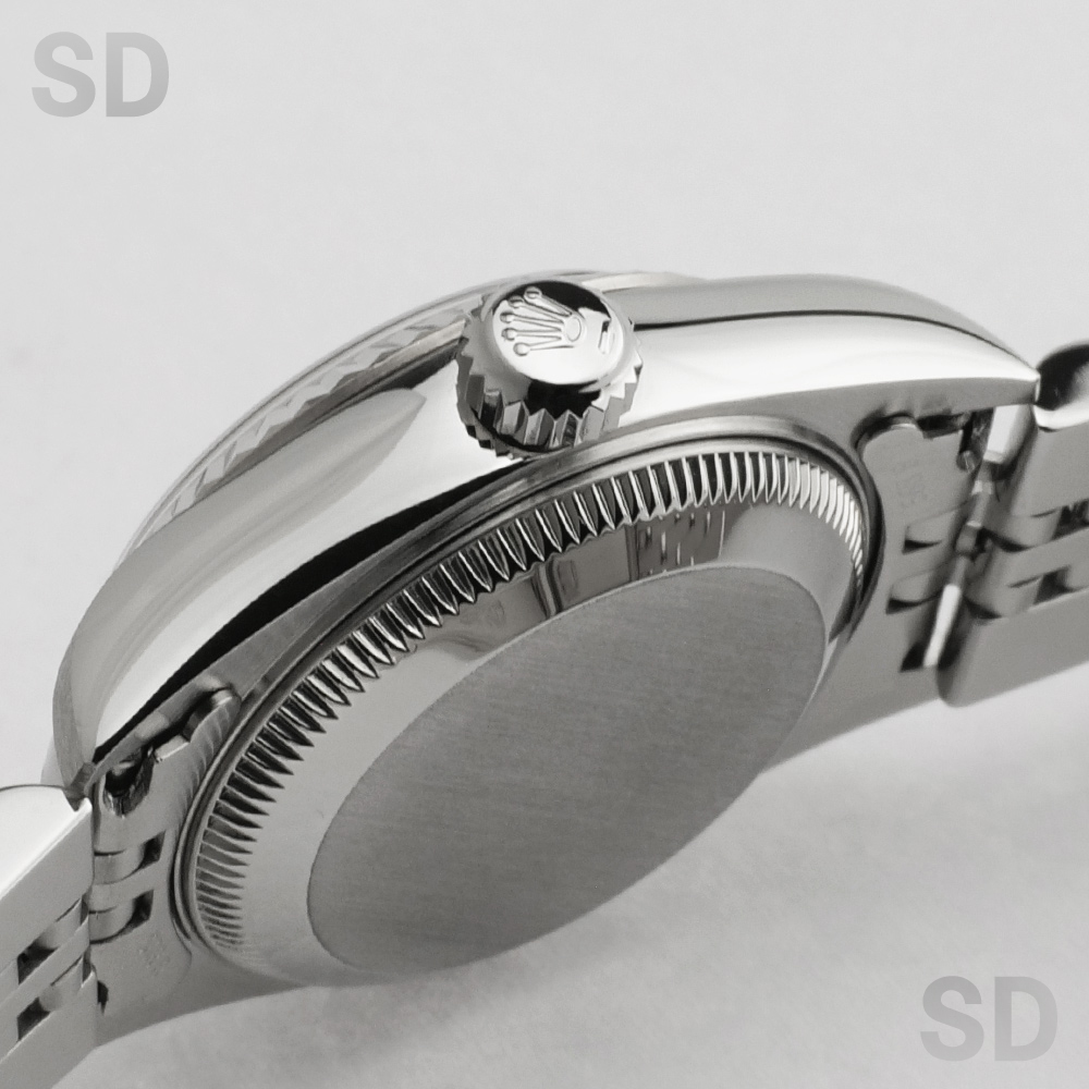 本個体は1999年頃から2003年頃にかけて製造されていた旧型リファレンスにあたり、ロレックスのドレスウォッチを象徴するデイトジャストの中でも、洗練された気品を放つ26mmサイズのレディースモデルでございます。ホワイトゴールド製のフルーテッドベゼルとステンレススチールによるロレゾール(コンビ)仕様に、中空構造のコマにより軽量性としなやかな装着感を両立したジュビリーブレスレットが装着。サテン仕上げが施された外装により、後継モデルと比べて落ち着いた佇まいを感じさせる点も魅力です。ピンクローマダイアルを配することで、柔らかな色調が全体に上品な華やかさを添え、ローマンインデックスのクラシカルな意匠と相まって、女性らしさと気品を兼ね備えた優雅な表情を演出しております。