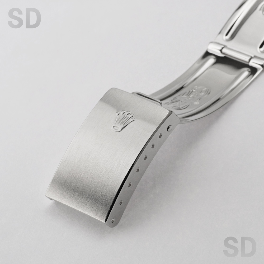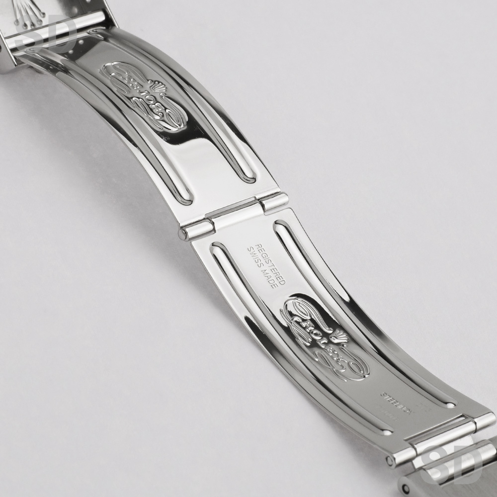 外装はメーカーで仕上げ(研磨)済みですが、メーカー特有の軽めの研磨の為、ケースサイドには光にかざすと確認できる程度の小傷と、ブレスレット表面には細かな小傷や打ち傷が残ります。しかしながら、特筆すべき大きな傷やダメージは見受けられず、コンディションは当時の原型を残す良好の個体であるといえます。