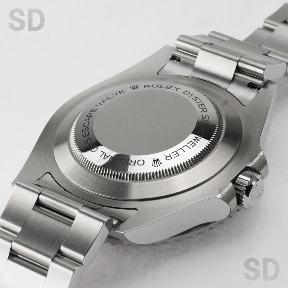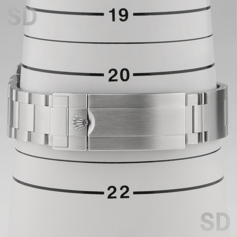 現行モデルとはいえ、既に数回のマイナーチェンジが行われておりますが、こちらは、文字盤の6時位置「SWISS MADE」表記に王冠が入る個体であり、ブレスレットにフリプロック・エクステンション・リンクが装備されている中期型となります。