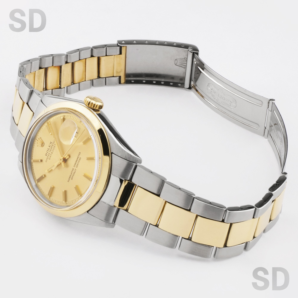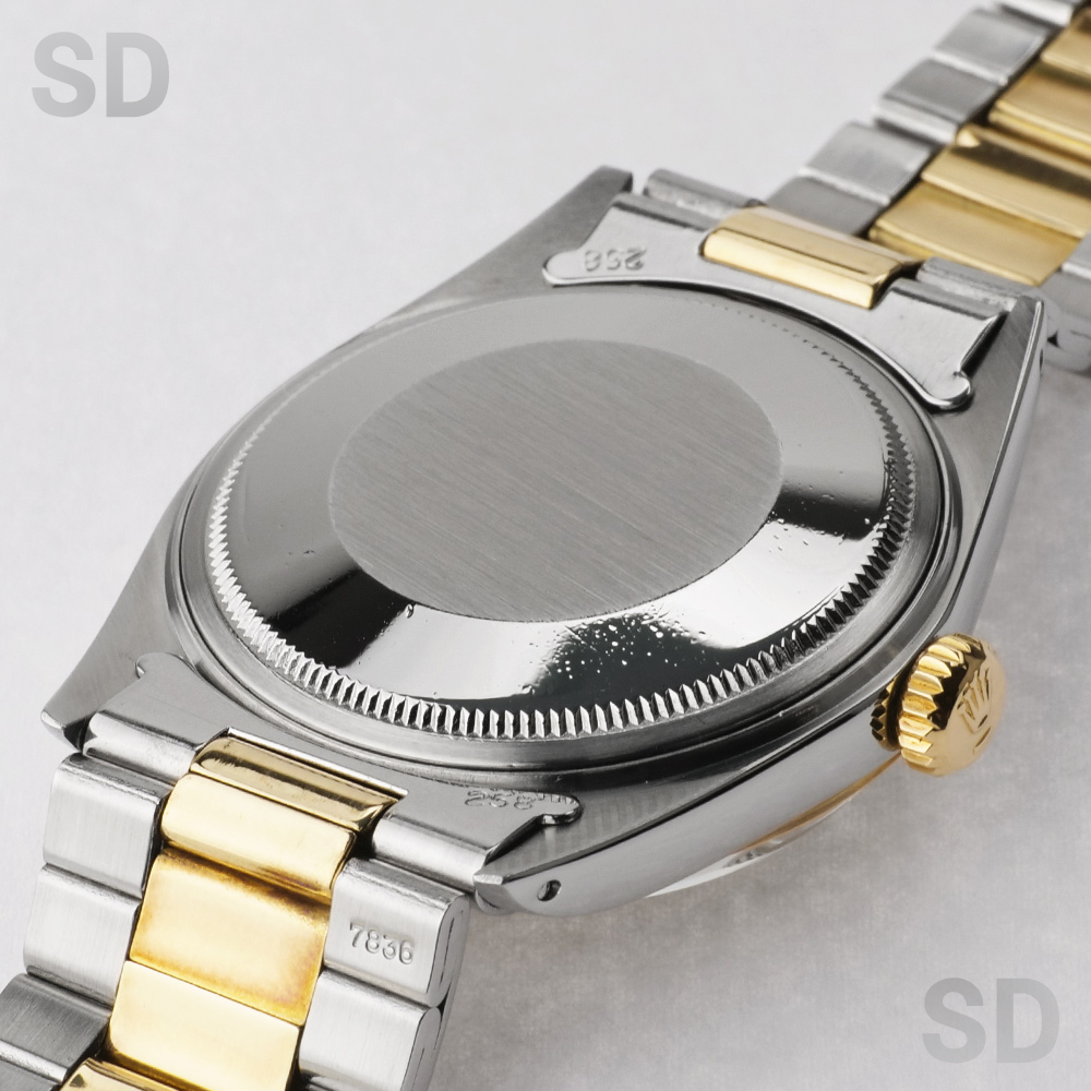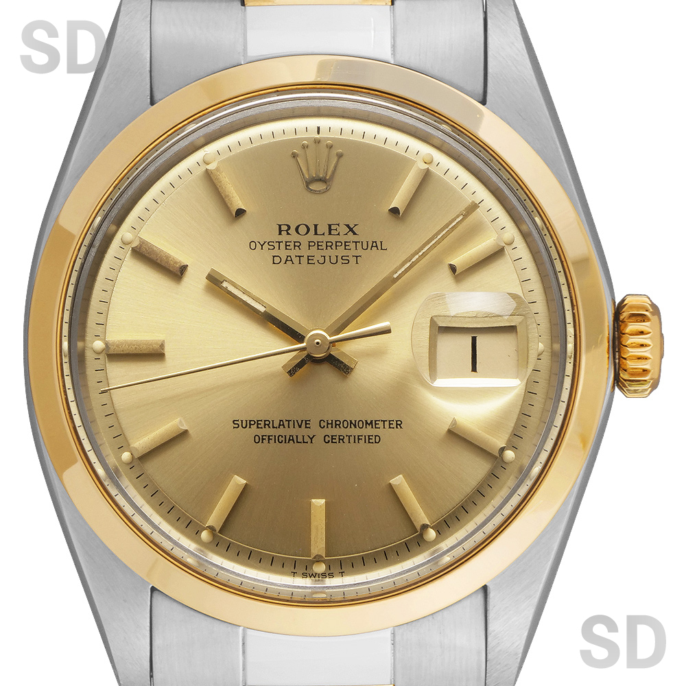 文字盤の外周が段落ちしているのが特徴の1960年代〜70年代を代表するヴィンテージデイトジャストシリーズ。こちらはポリッシュベゼルがセットされたコンビモデル。K14イエローゴールドの巻きオイスターブレスレットを装備し、年代物としてよりヴィンテージ感溢れる1本となっています。渋さと上品さを漂わせ、流行り廃りのないデザインとしてまだまだ現役で活躍出来るモデルです。