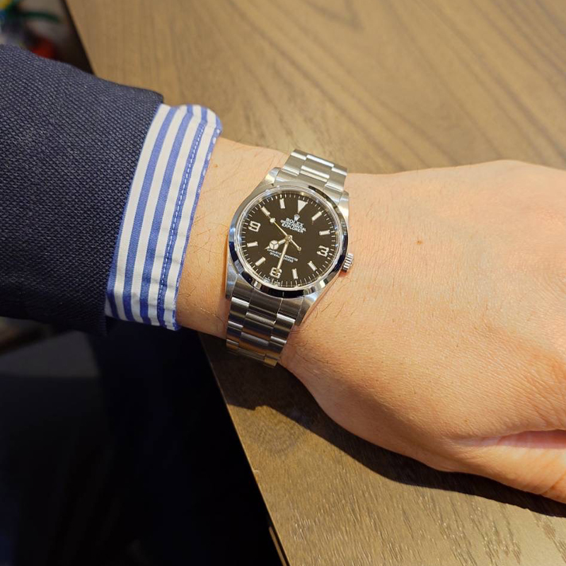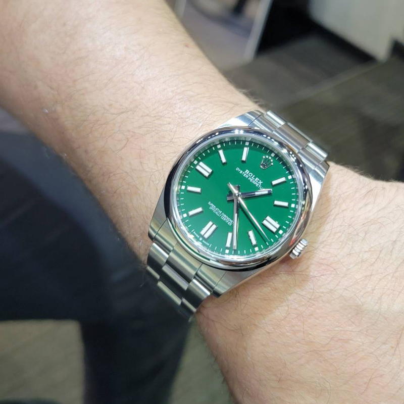 こちらのモデルは2020年に発表された約55時間パワーリザーブの新ムーブメントCal.2236を搭載した現行モデル。オールステンレスモデルのシンプルなモデルですが、シンプル故に時刻も読み取りやすく31mmケースなので普段使いにも邪魔になりません。現行モデルより採用されたミントグリーンダイヤルが目を惹く1本。鮮やかでありながら若干渋味も感じる色彩であり、年齢を重ねても末永く愛用していただけるモデルです。