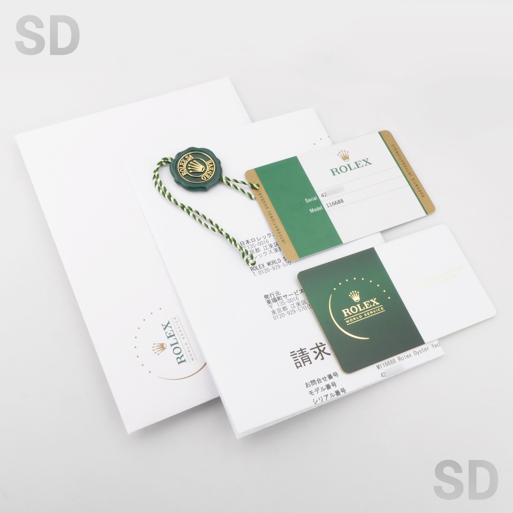 さらに、当該メンテナンス時に発行されたNFC機能搭載のロレックスサービスカードが付属しており、保証期間は2028年5月まで有効でございます。