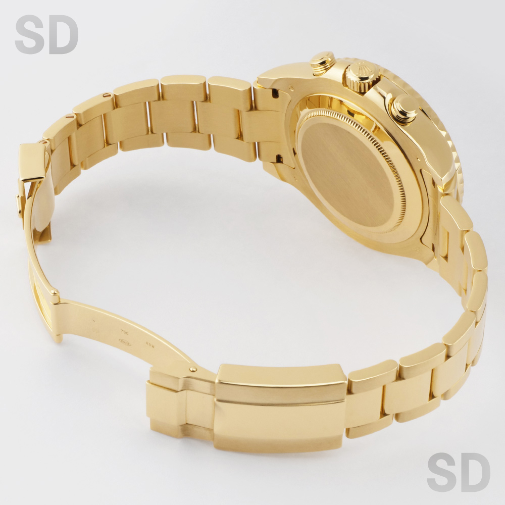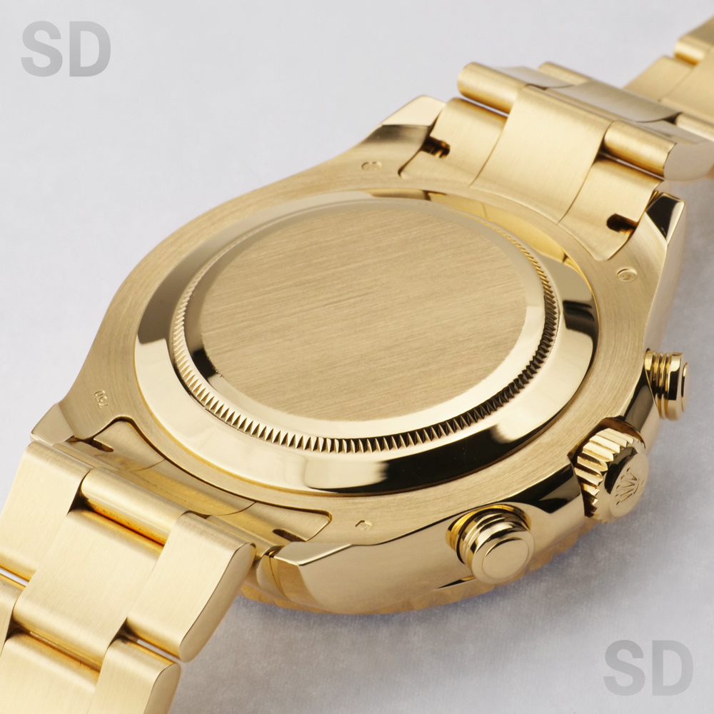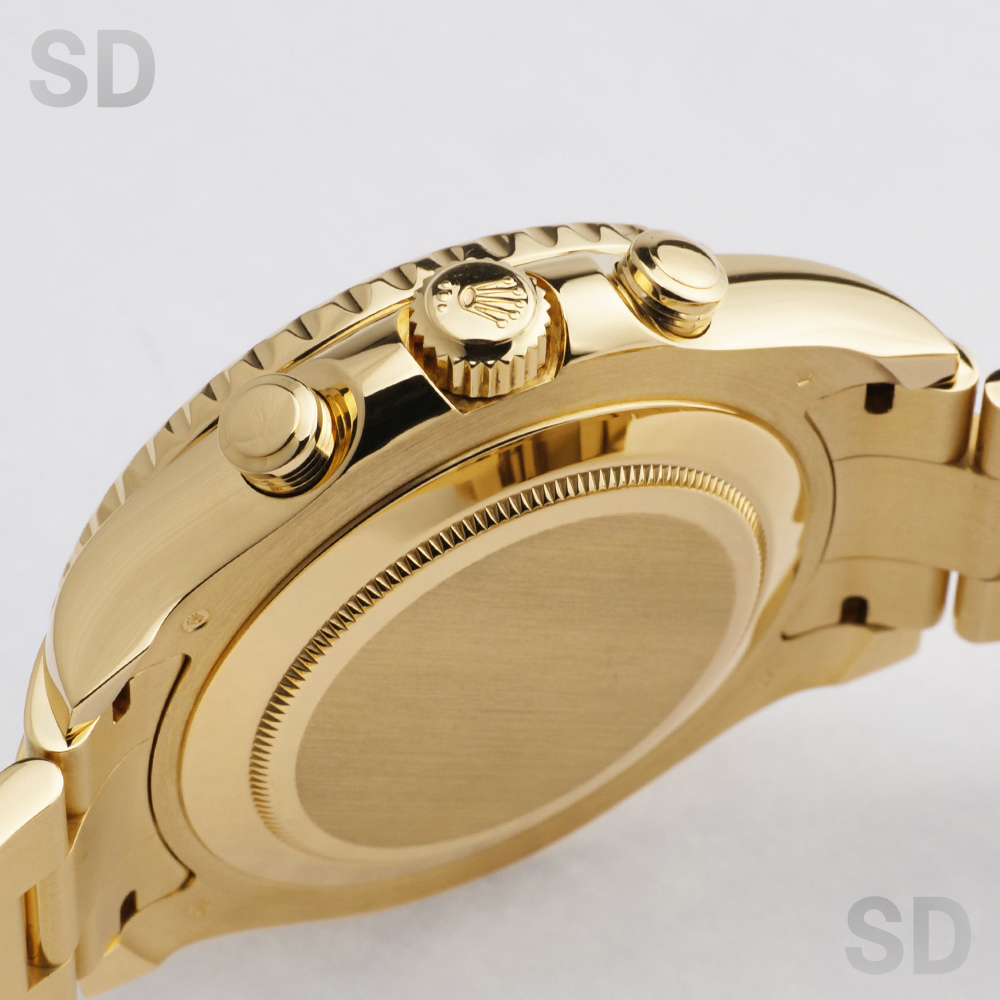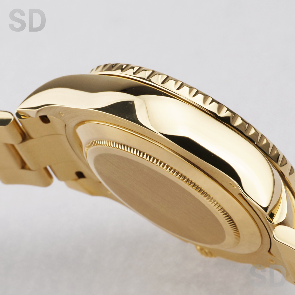 本個体は2007年から2024年頃まで製造されていた旧型リファレンスにあたり、ロレックスとして初となる機械式レガッタ機能を搭載し、10分から1分までのカウントダウン設定が可能となり、特許取得の専用ムーブメントと連動するリングコマンドベゼルによって、複雑な機構でありながら直感的な操作性を実現しております。また、ヨットマスターシリーズにおいて、18Kイエローゴールドモデルとして初めてブルーカラーのベゼルを採用しており、後期型のベンツ針との組み合わせによって、視認性とデザイン性を高い次元で両立しております。
