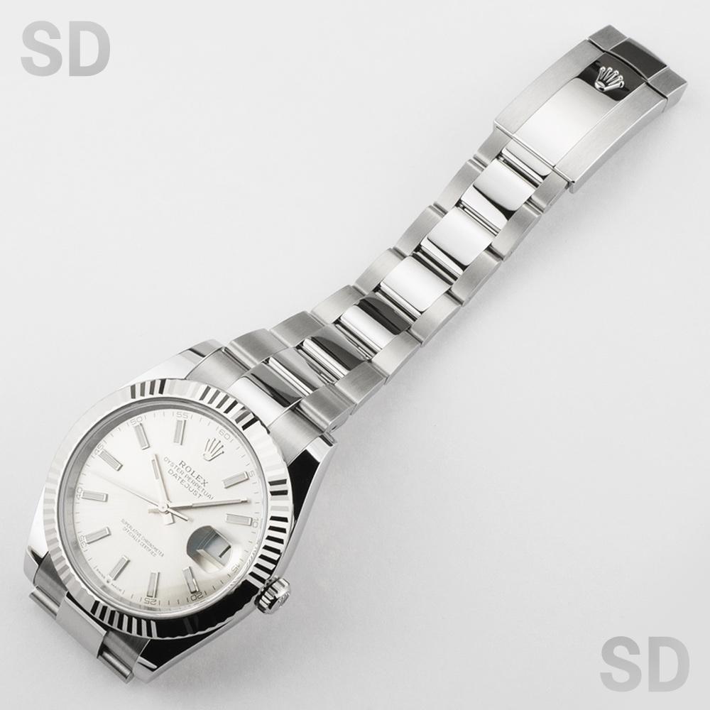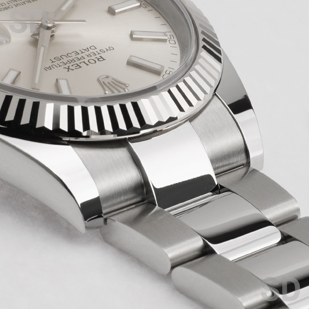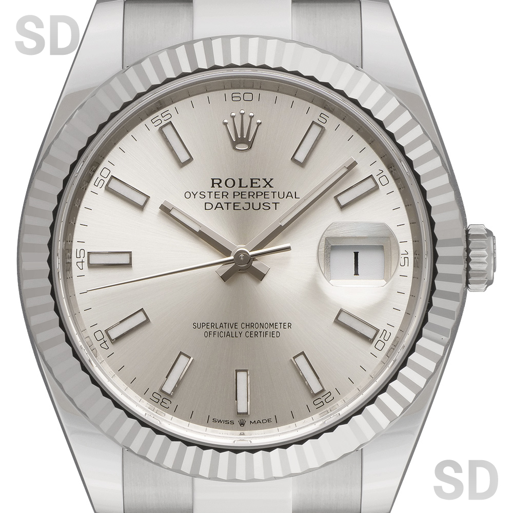 本個体は2017年より展開されている現行リファレンスで、ケース径41mmのラージサイズモデルでございます。ホワイトゴールド製のフルーテッドベゼルとステンレススチールによるロレゾール(コンビ)仕様に、堅牢性の高いオイスターブレスレットが装着。ムーブメントには新世代キャリバーCal.3235を搭載され、約70時間のパワーリザーブを確保。文字盤にはシルバーを配しており、落ち着きのある色合いの中に洗練された高級感を演出します。