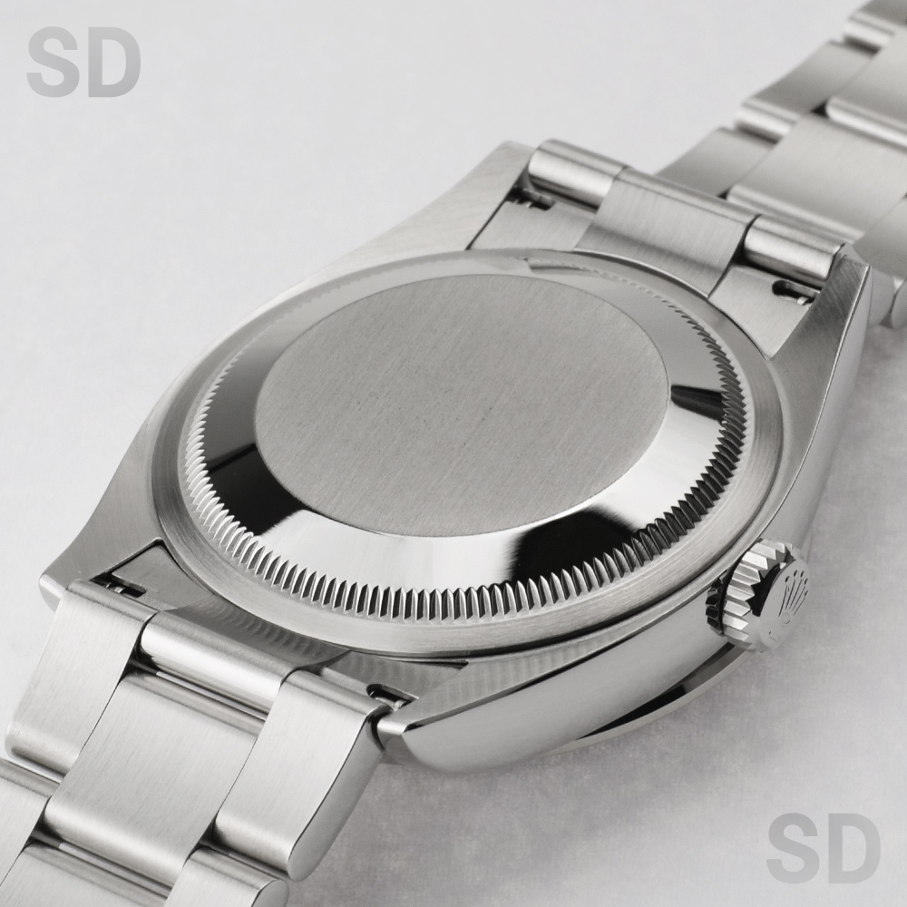 状態です。外装につきましては、提携の修理工房にて研磨を実施しております。取りきれない打ち傷がリューズの一部に残るものの、深い傷など特筆すべきダメージは見受けられず、全体として非常に整った状態を維持しております。