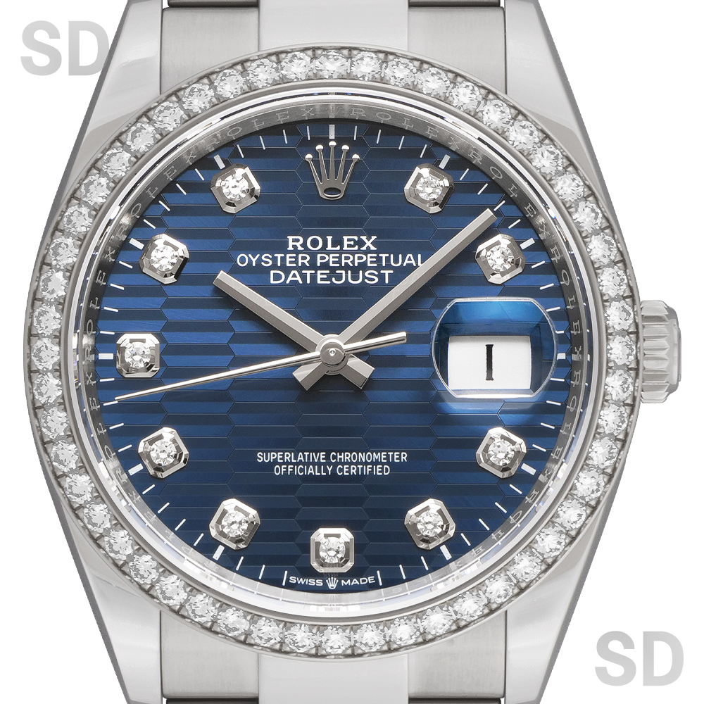 ブライトブルーフルーテッドモチーフ/ダイヤ/ベゼルダイヤ