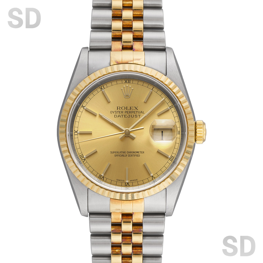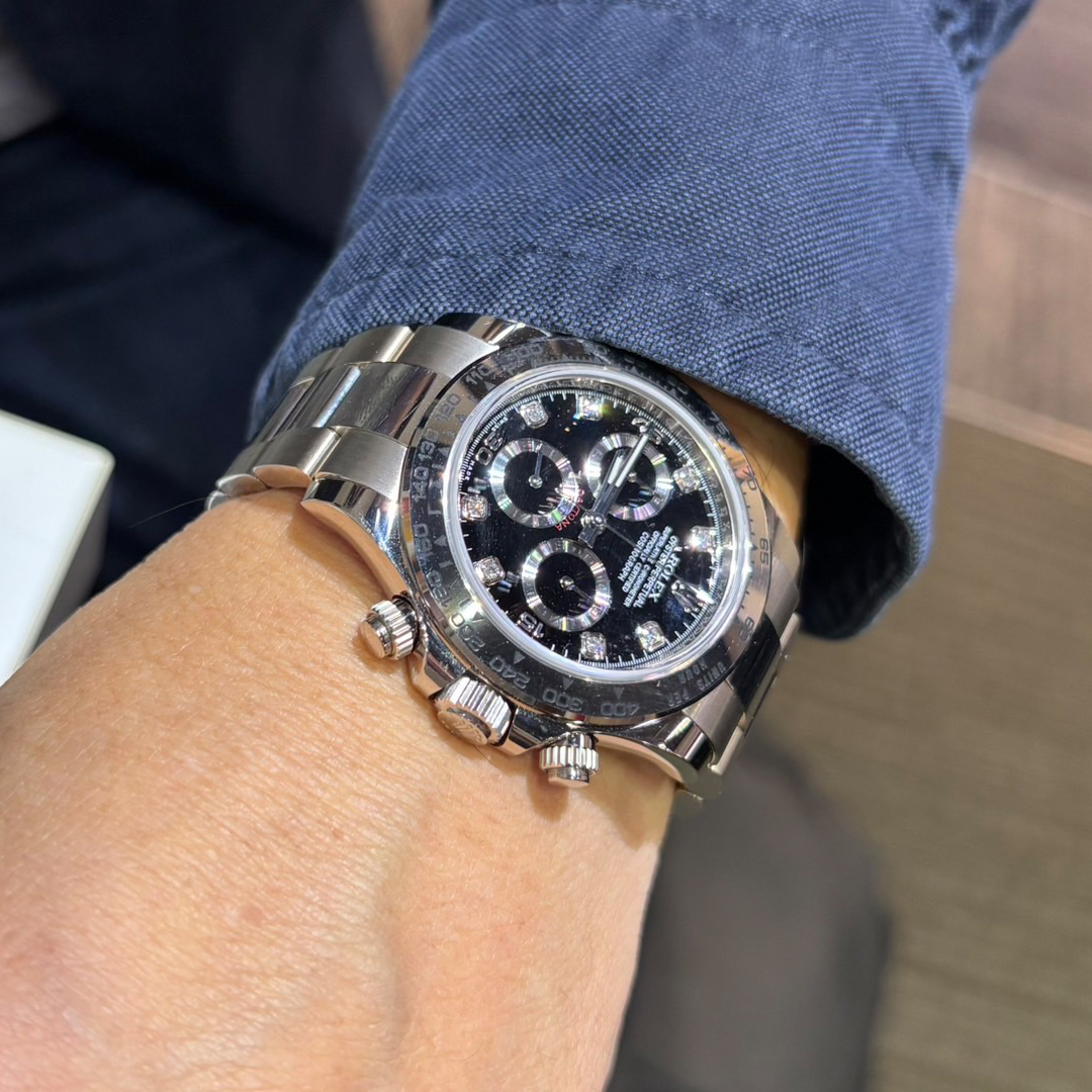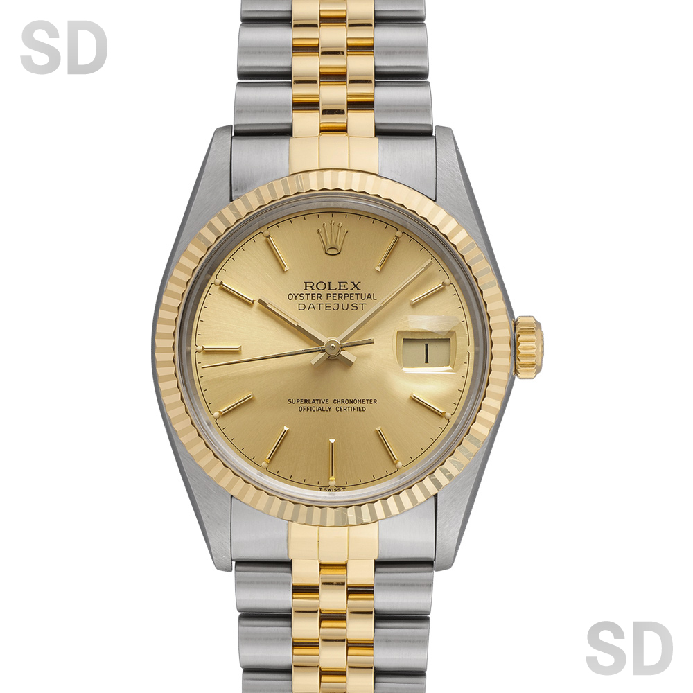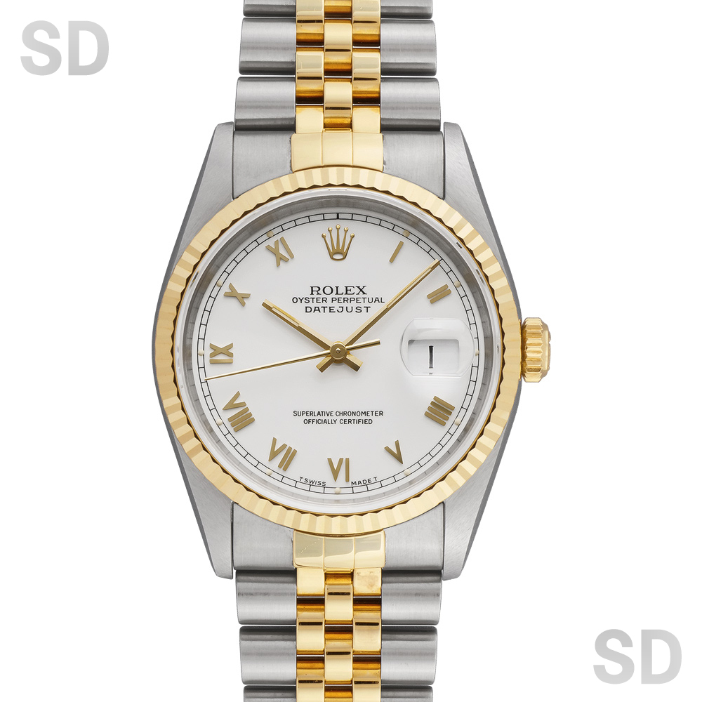 こちらの個体は2005年頃から2019年頃まで製造されていた旧型モデル。ロレックスの3大発明である「防水ケース」「自動巻き機構」「カレンダー機構」を搭載したデイトジャスト。メンズモデルの中でも高い人気を誇り、素材・ダイヤル・サイズのバリエーションは他のモデルと比べ、数多く存在しております。山形に等間隔でカッティングされたギザギザの刻みのフルーテッドベゼルに、コンシールドクラスプと呼ばれるバックルが目立たない作りが特徴のジュビリーブレスが装着。ベゼルにはホワイトゴールドを使用し、ダイヤルはブラック・アラビアをセットした珍しい1本です。