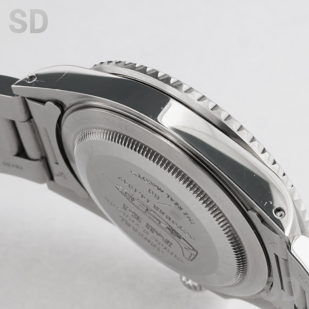 文字盤はトリチウム表記のルミノバが塗布された通称トリチノバダイヤル。ムーブメントはcal.3185が搭載され、ブレスレットナンバーは78790、フラッシュフィットナンバーは580B、クラスプにU6(1998年)の刻印がされております。