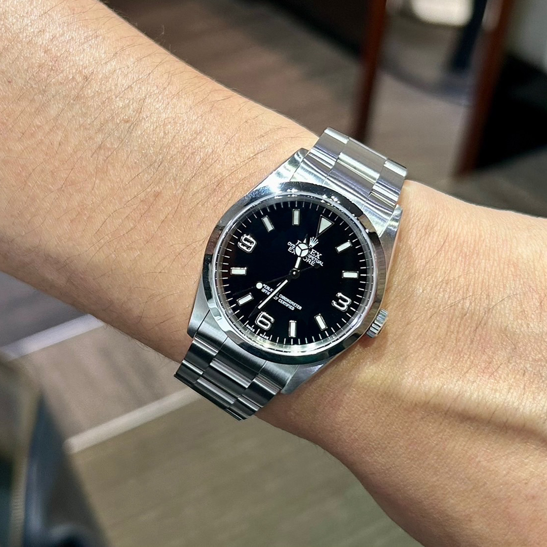 状態です。ベゼルはエッジ痩せを防ぐため、あえて仕上げ(研磨)は施しておりません。その他外装は修理工房にて研磨済みですがラグやブレスに取りきれない小傷が残る程度で特筆すべきダメージは見受けられません。ブレスレットの伸びもなく、年式を考慮していただければコンディションは良好です。内部機械は職人よるオーバーホール(分解掃除)済みですので、中古品ではございますが安心してお使い頂ける状態となっております。付属品は国際保証書、シリアルナンバー入りタグ、クロノメータータグと、サテンドールオリジナルBOXが付いております。