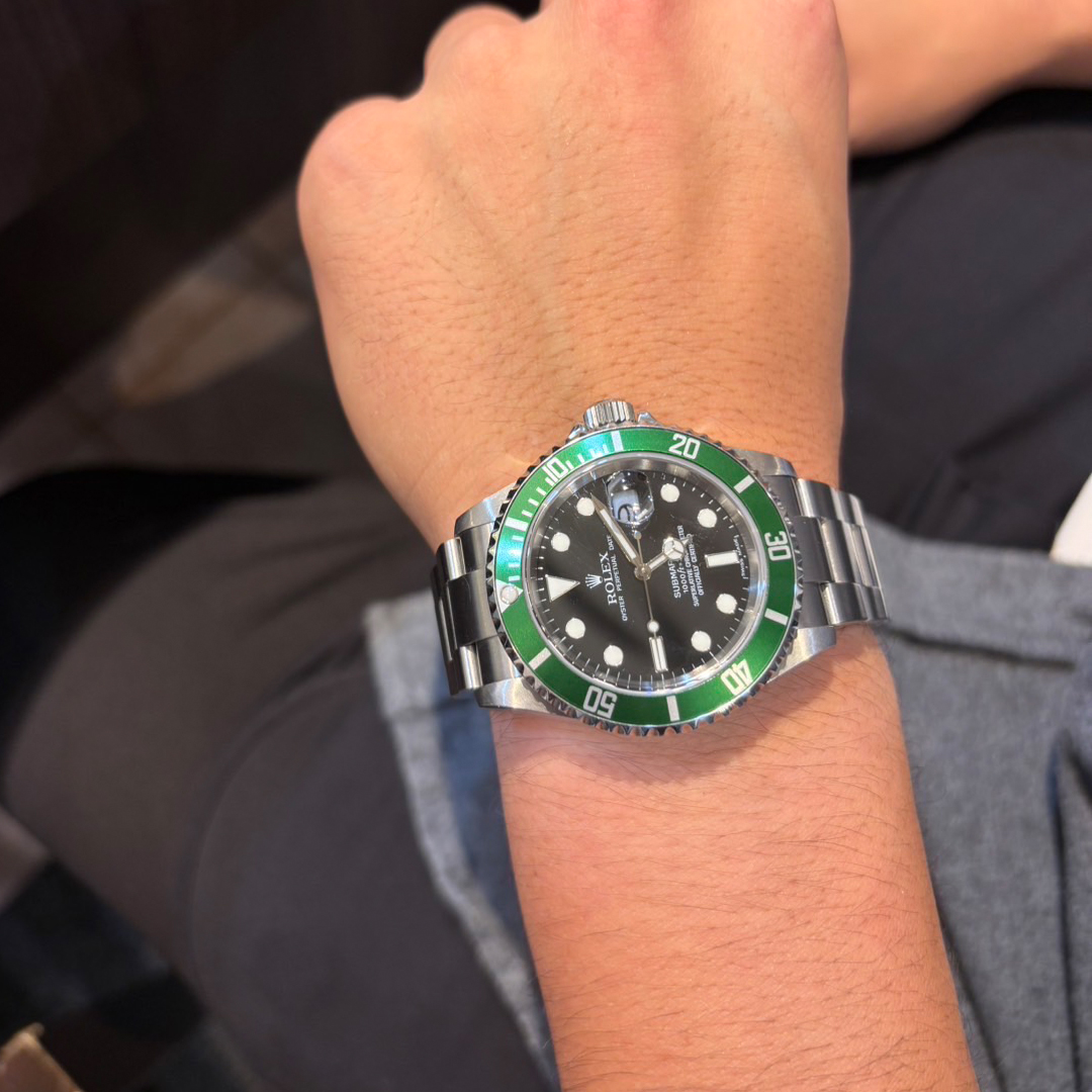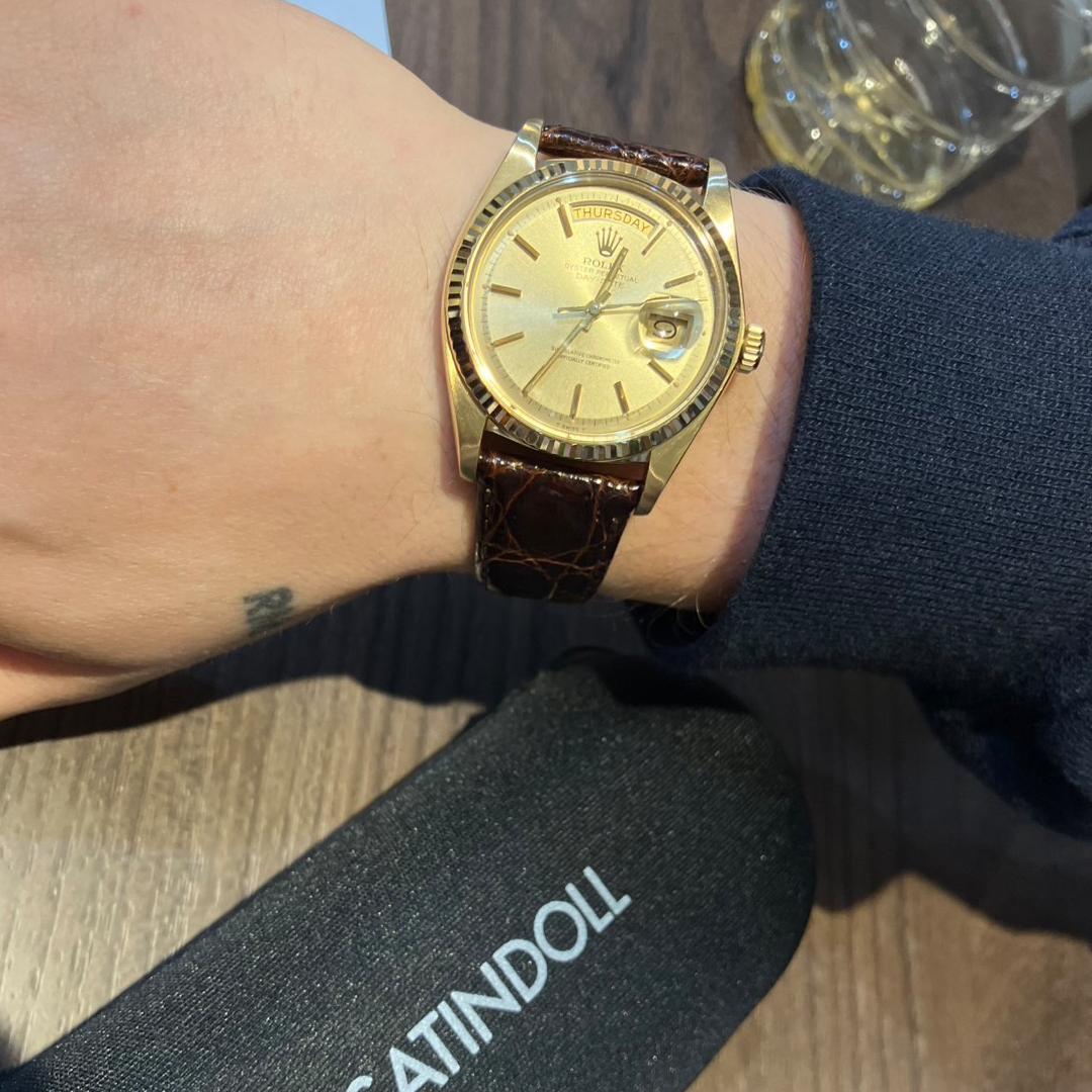 状態です。外装は修理工房にて研磨済みですのが、取りきれない微細な傷がベゼルとケースサイド、裏ブタとブレス周辺に残る程度で特筆すべきダメージは見受けられません。コンディションは良好です。内部は弊社にて動作チェックを行い、精度、リューズ操作ともに問題ございませんでした。付属品は国際保証カード、ロレックスの純正BOXが付いております。