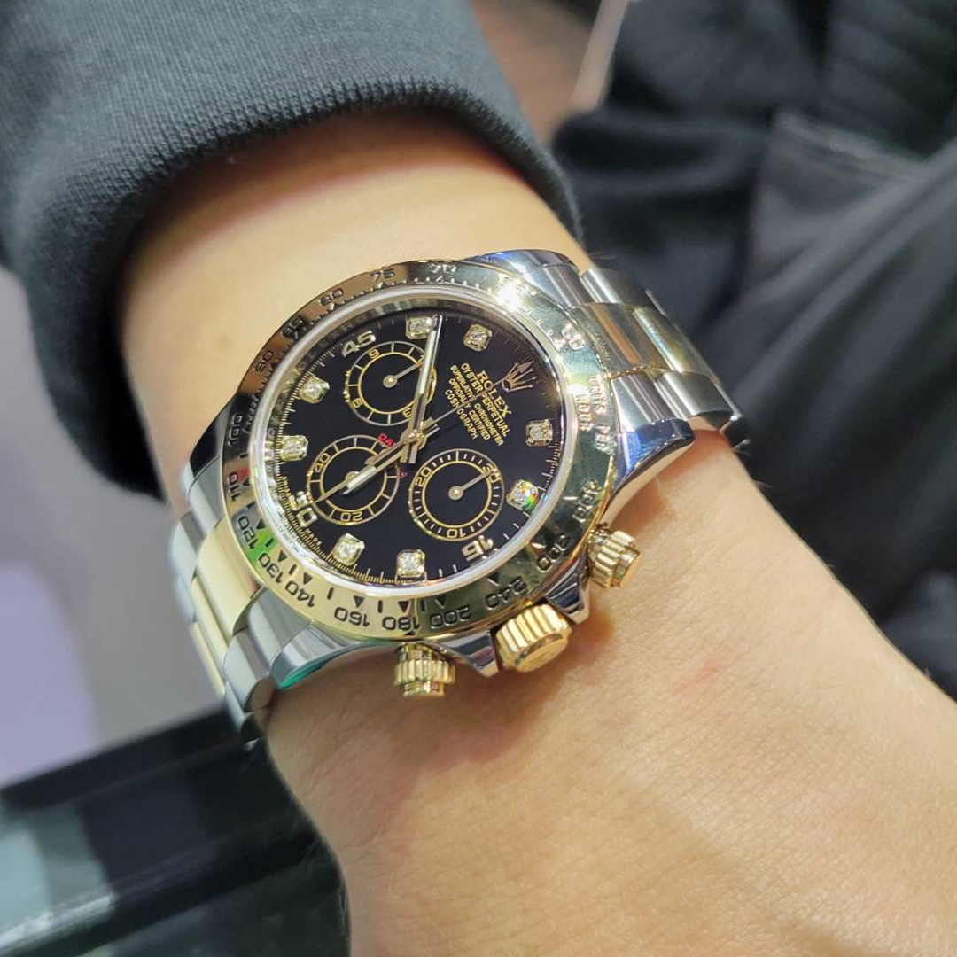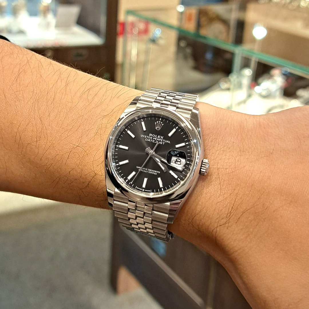 文字盤の外周が段落ちしているのが特徴の1960年代〜70年代を代表するヴィンテージデイトジャストシリーズ。こちらのモザイク文字盤は、海外のヴィンテージマニアから「リネン(亜麻布)ダイヤル」とも呼ばれており、不規則に縦横と線が施されまるで麻袋のようなザラザラとした模様が特徴です。またこちらはインデックスにゴールドを使用しているマーク「σ(シグマ)」ダイヤルとして評価されている個体でもあり、とても渋くよりヴィンテージ感が味わえるとして人気の文字盤。ビジネススタイルでもカジュアルスタイルでも合わせやすく、まだまだ現役で活躍出来るモデルです。