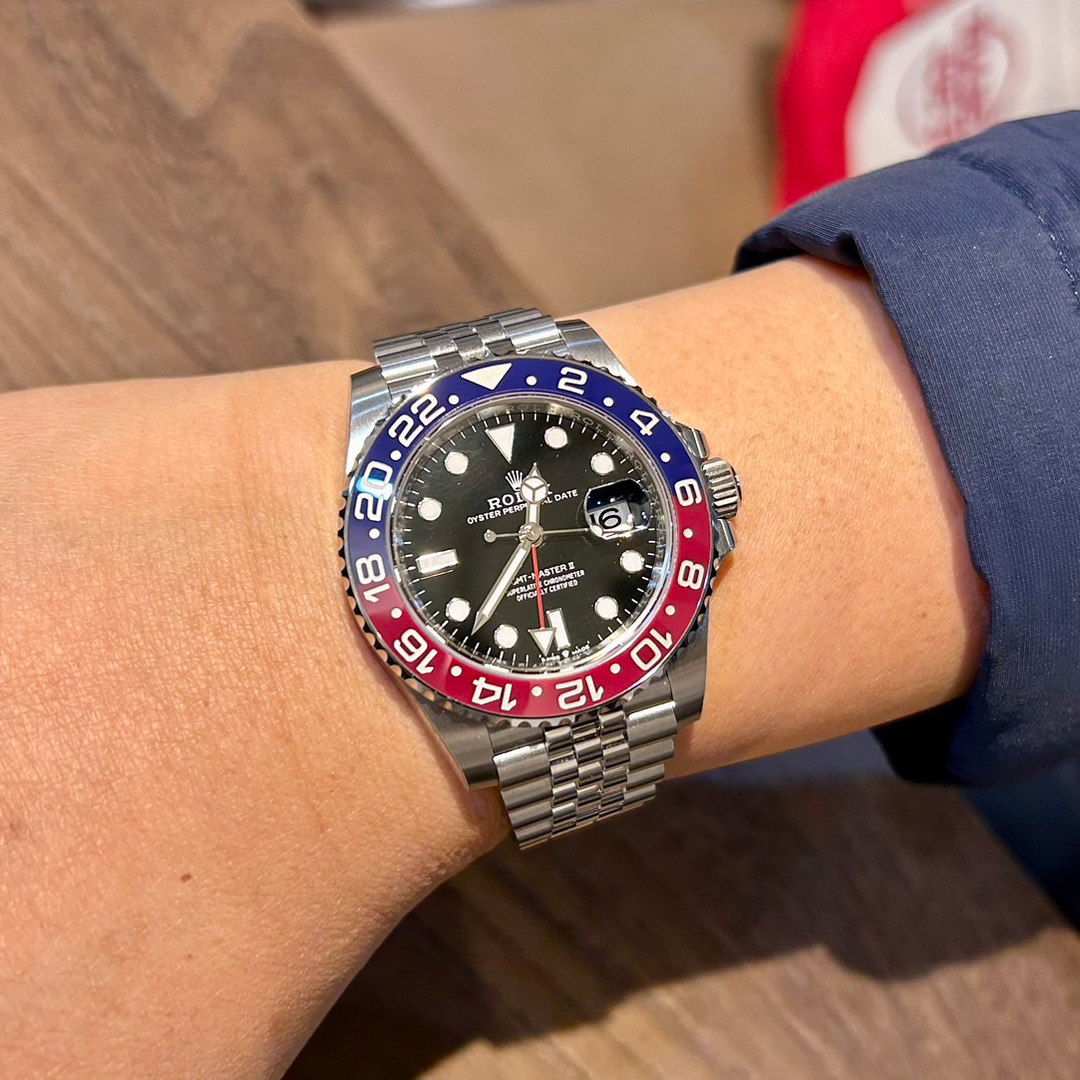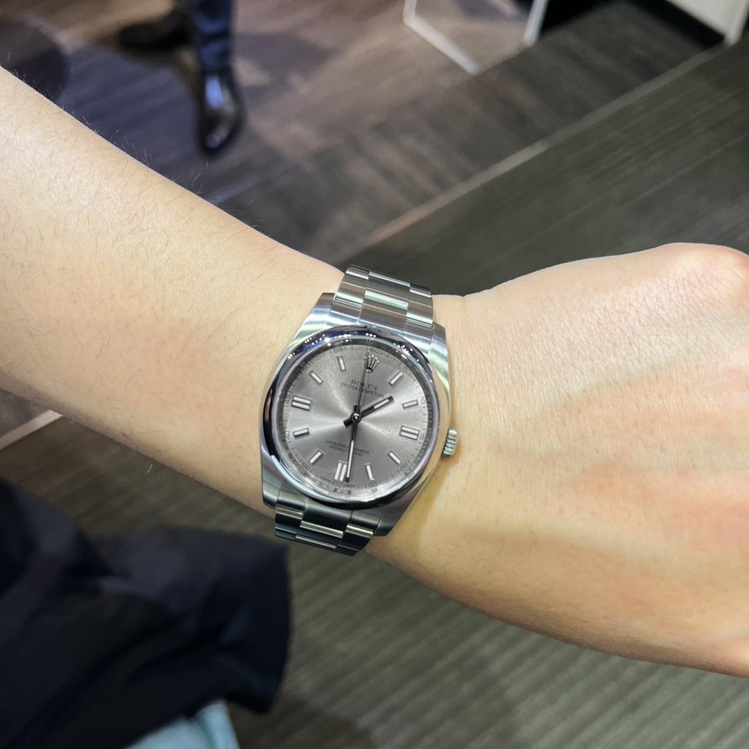 状態です。当店では外装ノンポリッシュのため、ベゼル、ラグ、裏ブタ、バックルとクラスプ裏に擦り傷小傷が残りますが、特筆すべき大きなダメージは見受けられません。コンディションは良好です。内部は弊社にて動作チェックを行い、精度、リューズ操作ともに問題ございませんでした。付属品は国際保証カード、ロレックス純正BOXが付いております。