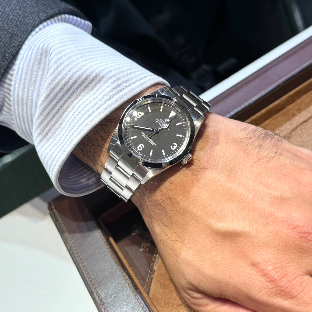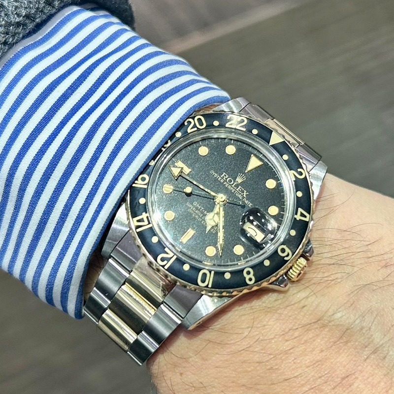 状態です。当店では外装ノンポリッシュの為、ベゼルや裏ブタ、バックル、クラスプ裏周辺に擦り傷と、ケースサイドに打ち傷が残る程度で特筆すべき大きなダメージは見受けられません。年式も新しく、コンディションは良好です。内部は弊社にて動作チェックを行い、精度、リューズ操作ともに問題ございませんでした。付属品は国際保証カード、ロレックスの純正BOXが付いております。
